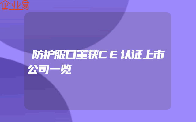 - 防护服口罩获CE认证上市公司一览