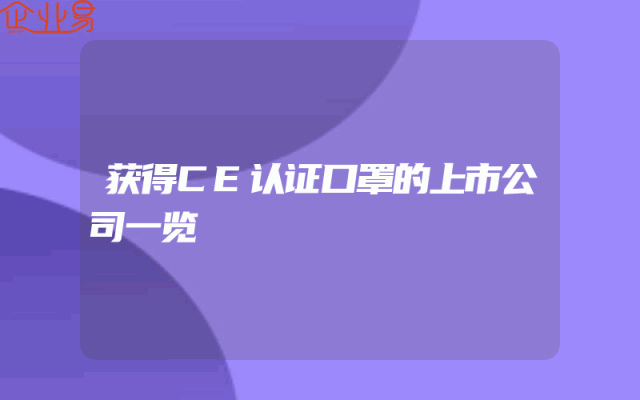 - 获得CE认证口罩的上市公司一览