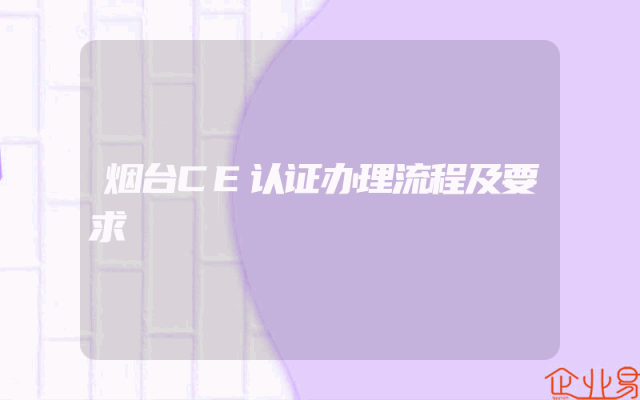 - 烟台CE认证办理流程及要求