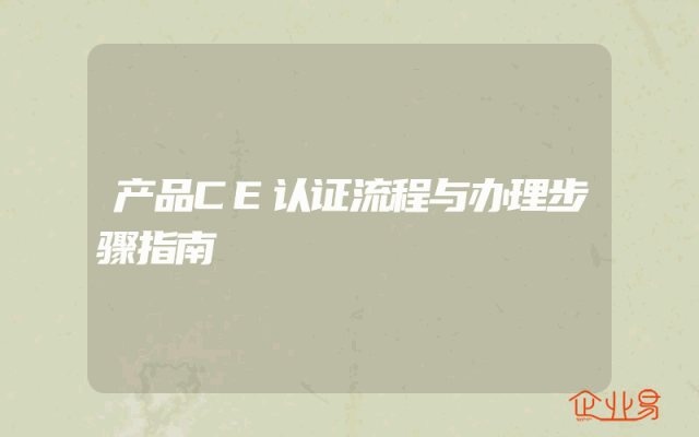 - 产品CE认证流程与办理步骤指南
