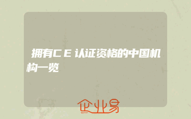 - 拥有CE认证资格的中国机构一览
