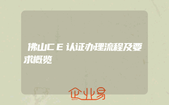 - 佛山CE认证办理流程及要求概览