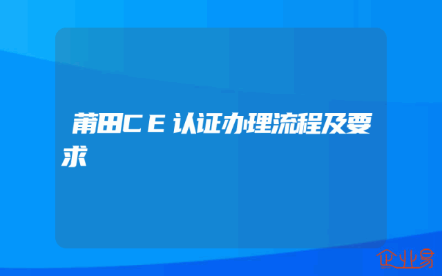 - 莆田CE认证办理流程及要求