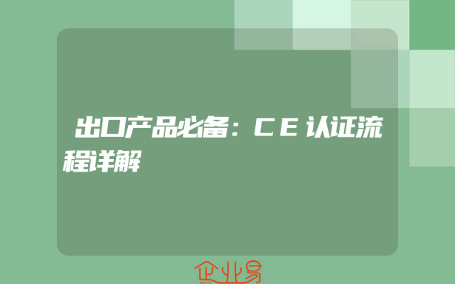 - 出口产品必备:CE认证流程详解