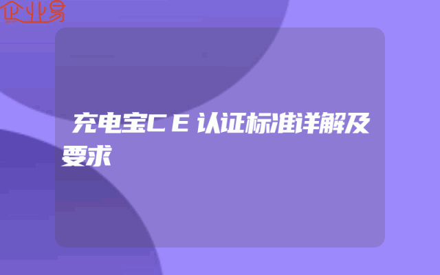 - 充电宝CE认证标准详解及要求一、CE认证概述在欧洲市场,产品的CE认证是进入市场的通行证。对于充电宝而言,符合CE认证标准意味着其安全性能、电磁兼容性等方面满足了欧盟的法规要求。本文将详细解读充电宝CE认证的标准及要求。二、CE认证