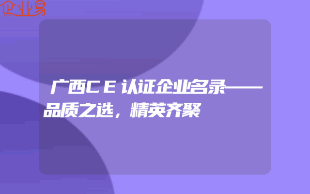- 广西CE认证企业名录——品质之选,精英齐聚