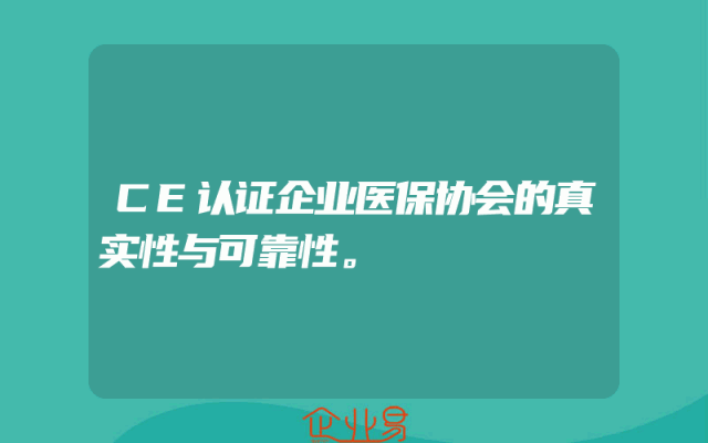 - CE认证企业医保协会的真实性与可靠性。