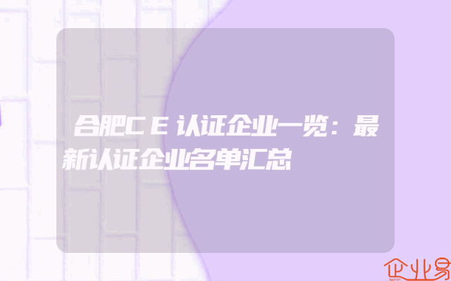 - 合肥CE认证企业一览:最新认证企业名单汇总
