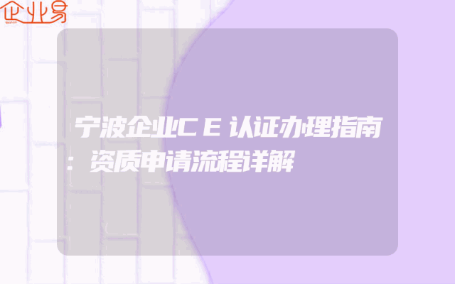 - 宁波企业CE认证办理指南:资质申请流程详解