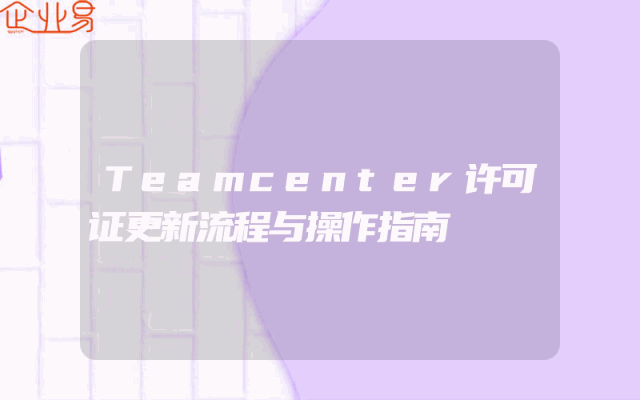 - Teamcenter许可证更新流程与操作指南一、了解许可证更新需求在使用Teamcenter进行企业服务管理的过程中,许可证更新是一项重要任务。更新许可证能确保您的系统正常运行,并享受到最新的功能支持和安全更新。在准备更新许可证之前,您需要