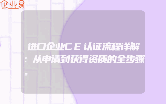- 进口企业CE认证流程详解:从申请到获得资质的全步骤一、了解CE认证概述CE认证,即欧洲共同体认证,是一种针对产品安全性能的强制性认证。对于想要将产品销往欧洲的企业来说,了解CE认证流程至关重要。本文将详细解读从申请到获得资质的全过程。二、准