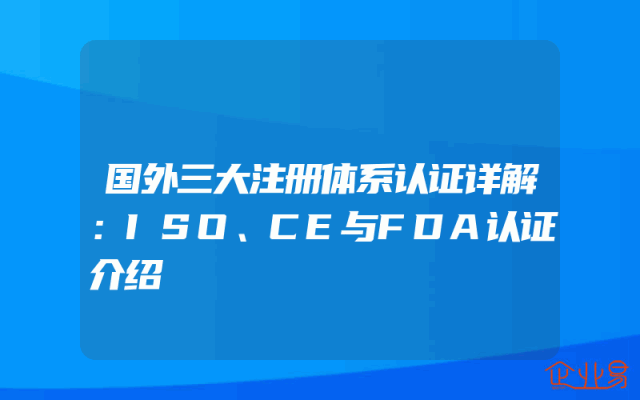 - 国外三大注册体系认证详解:ISO、CE与FDA认证介绍