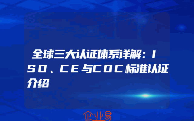 - 全球三大认证体系详解:ISO、CE与COC标准认证介绍