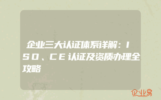 - 企业三大认证体系详解:ISO、CE认证及资质办理全攻略