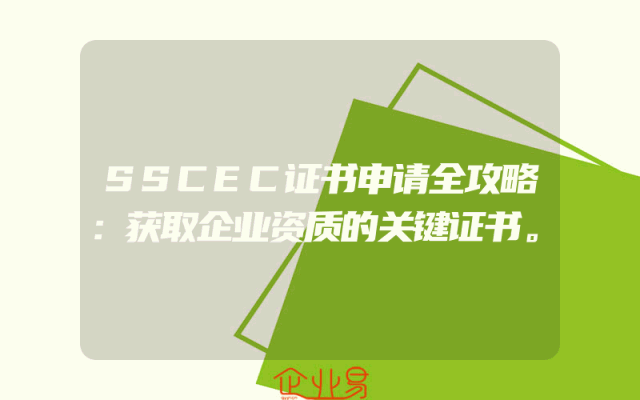 - SSCEC证书申请全攻略:获取企业资质的关键证书。