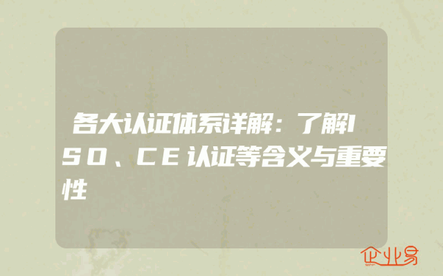 - 各大认证体系详解:了解ISO、CE认证等含义与重要性
