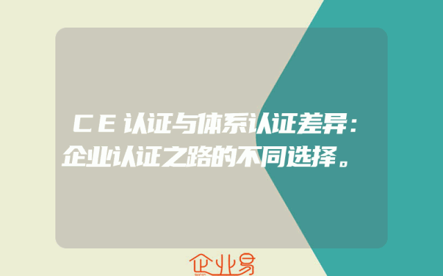 - CE认证与体系认证差异:企业认证之路的不同选择。