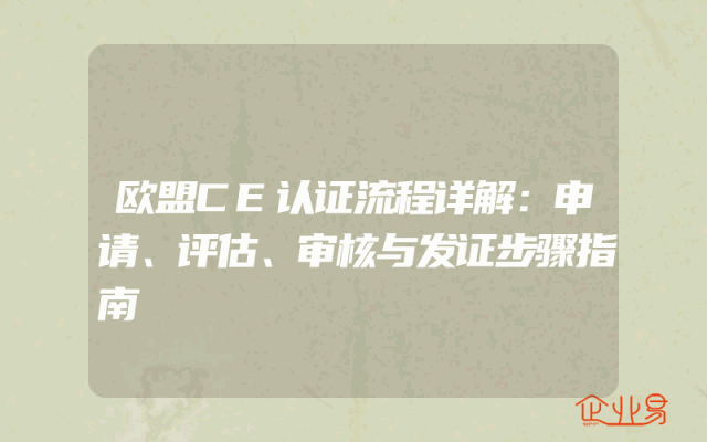 - 欧盟CE认证流程详解:申请、评估、审核与发证步骤指南