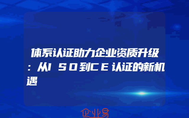 - 体系认证助力企业资质升级:从ISO到CE认证的新机遇
