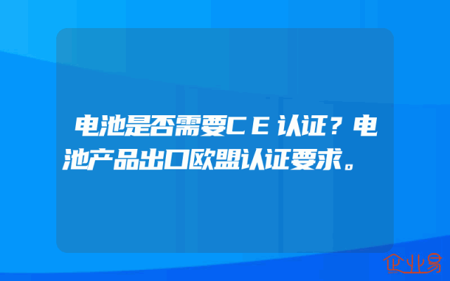 - 电池是否需要CE认证?电池产品出口欧盟认证要求。