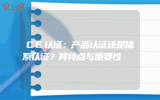 - CE认证:产品认证还是体系认证?其特点与重要性