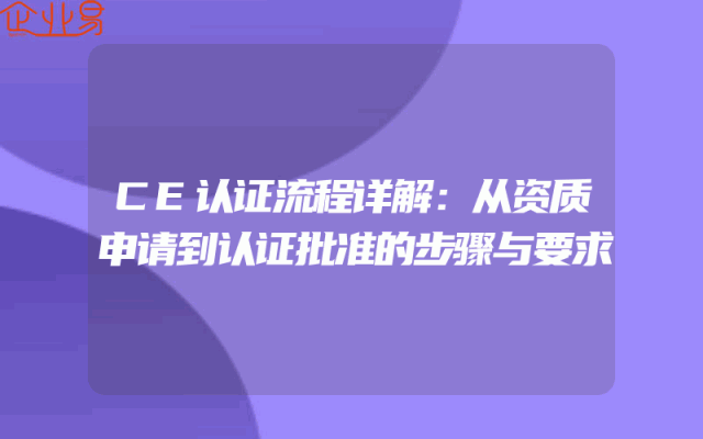 - CE认证流程详解:从资质申请到认证批准的步骤与要求