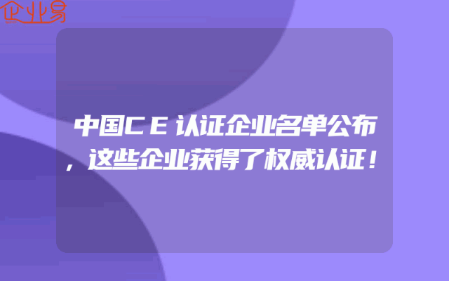 - 中国CE认证企业名单公布,这些企业获得了权威认证!