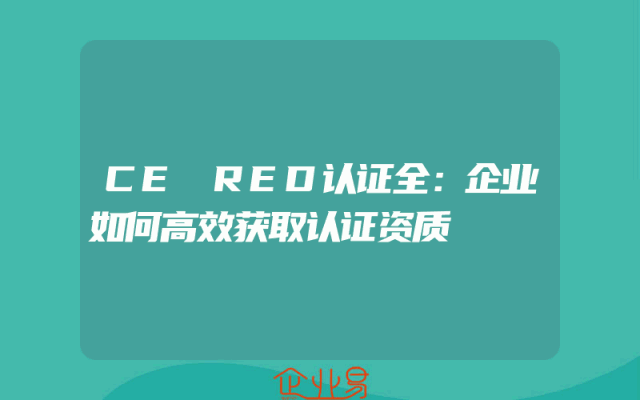 - CE RED认证全:企业如何高效获取认证资质