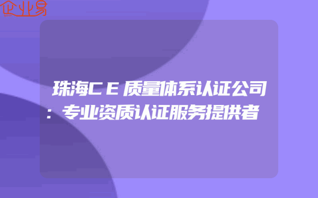 - 珠海CE质量体系认证公司:专业资质认证服务提供者