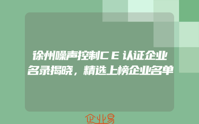 - 徐州噪声控制CE认证企业名录揭晓,精选上榜企业名单