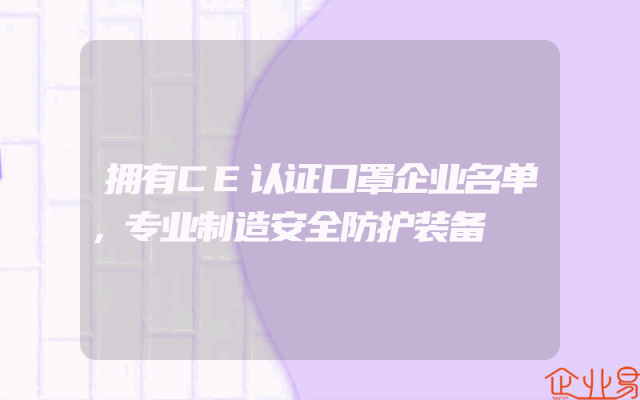 - 拥有CE认证口罩企业名单,专业制造安全防护装备