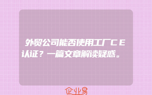 - 外贸公司能否使用工厂CE认证?一篇文章解读疑惑。