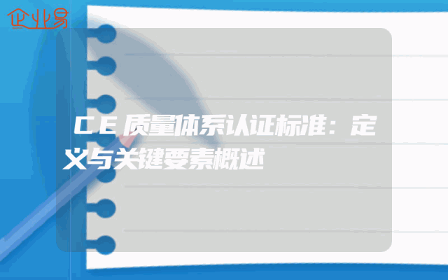 - CE质量体系认证标准解析:定义与关键要素概述一、CE质量体系认证标准的定义CE质量体系认证标准是一种用于评估企业或组织是否符合欧洲联盟(EU)要求的认证体系。该标准旨在确保产品或服务满足预定的质量标准和法规要求,从而达到消费者保护和市场公平