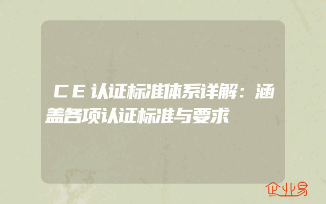- CE认证标准体系详解:涵盖各项认证标准与要求