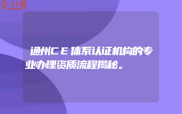 - 通州CE体系认证机构的专业办理资质流程揭秘。