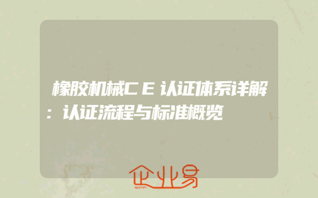 - 橡胶机械CE认证体系详解:认证流程与标准概览