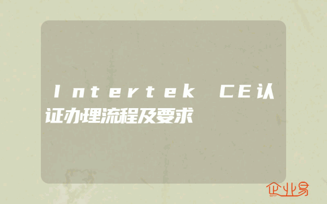 - IntertekCE认证办理流程及要求解析一、CE认证概述随着欧洲市场的日益开放和全球化趋势的加强,许多企业纷纷将产品销往欧洲。为确保产品的安全性和符合欧洲标准,IntertekCE认证成为了产品进入欧洲市场的必备证书之一。Intertek