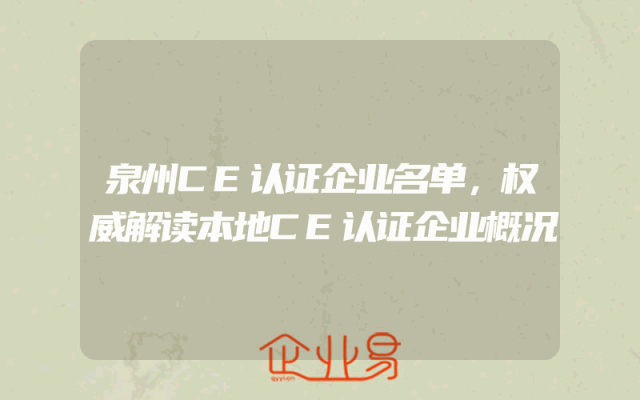 - 泉州CE认证企业名单,权威解读本地CE认证企业概况