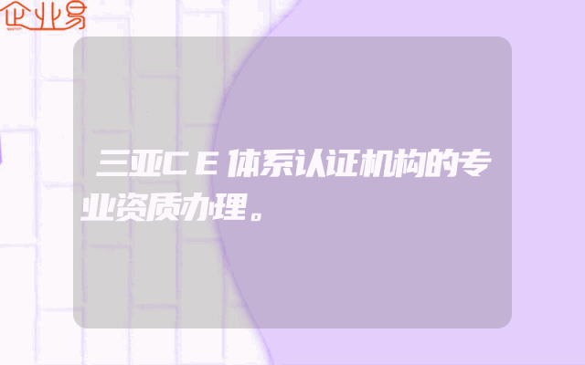 - 三亚CE体系认证机构的专业资质办理解析一、三亚CE体系认证机构概述三亚作为中国沿海的重要城市,其企业服务行业发展迅速,其中CE体系认证机构在帮助企业提升国际竞争力方面发挥着重要作用。这些机构致力于为企业提供专业的资质办理服务,帮助企业顺利通