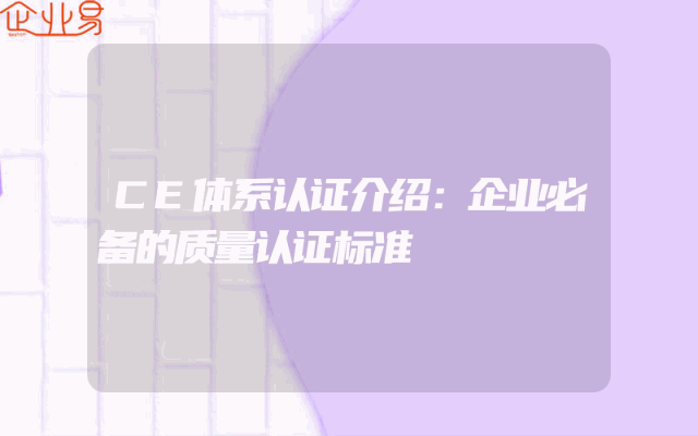 - CE体系认证介绍:企业必备的质量认证标准一、CE体系认证概述在当今经济全球化的大背景下,产品质量的重要性愈发凸显。CE体系认证(CommonEuropeanFrameworkforCertification)作为欧洲通行的一种质量认证标准,