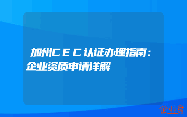 - 加州CEC认证办理指南:企业资质申请详解一、了解CEC认证及其重要性CEC认证即加州能源效率认证,旨在确保企业的产品或服务满足当地能源效率标准和市场需求。在日益强调环保与能源效率的当下,对于希望拓展加州市场的企业来说,获取CEC认证至关重要