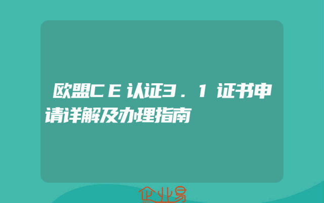 - 欧盟CE认证3.1证书申请详解及办理指南