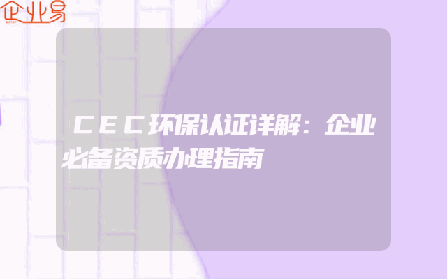 - CEC环保认证详解:企业必备资质办理指南一、CEC环保认证概述随着环境保护日益受到重视,CEC环保认证已成为企业必备的资质之一。CEC环保认证是一种针对企业环保表现的评估和认证体系,旨在推动企业实现绿色、可持续发展。该认证不仅关乎企业的社会