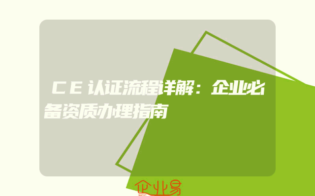 - CE认证流程详解:企业必备资质办理指南一、了解CE认证基本概念CE认证,即欧洲共同体(CommunityEurope)认证,是一种针对产品的安全性能和质量标准的认证。对于想要在欧洲市场进行销售的企业来说,获得CE认证是必备的资质。这种认证不