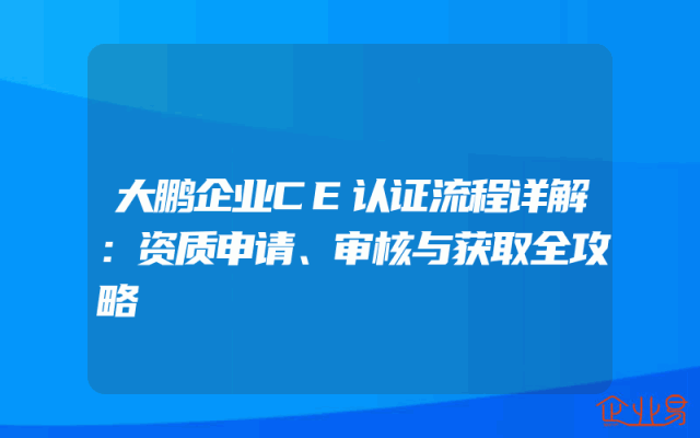 - 大鹏企业CE认证流程详解:资质申请、审核与获取全攻略