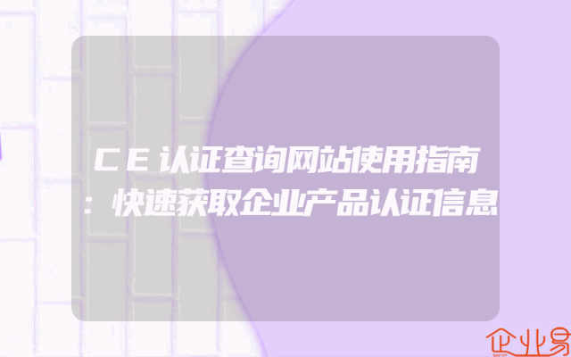 - CE认证查询网站使用指南:快速获取企业产品认证信息