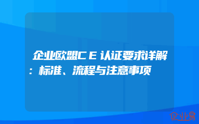 - 企业欧盟CE认证要求详解:标准、流程与注意事项