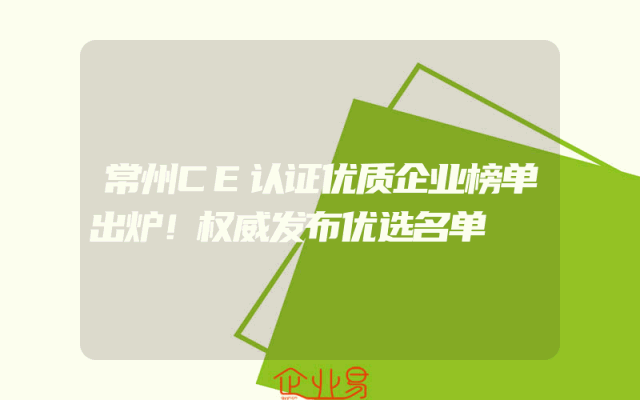 - 常州CE认证优质企业榜单出炉!权威发布优选名单