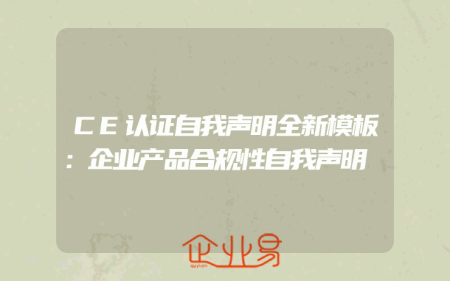 - CE认证自我声明全新模板:企业产品合规性自我声明
