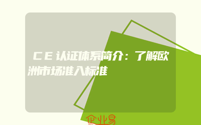- CE认证体系简介:了解欧洲市场准入标准一、CE认证体系概述CE认证,即符合欧洲市场准入标准的产品认证,是欧洲联盟国家对产品的强制性安全认证要求。对于想要进入欧洲市场的企业来说,了解CE认证体系是至关重要的。二、CE认证的重要性在欧洲市场,产
